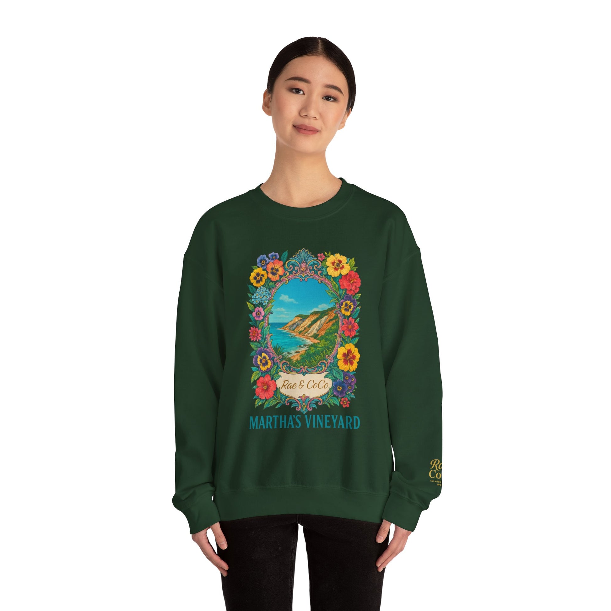 Aquinnah Cliffs Floral Crewneck – Martha’s Vineyard Classic | Unisex Heavy Blend Sweatshirt