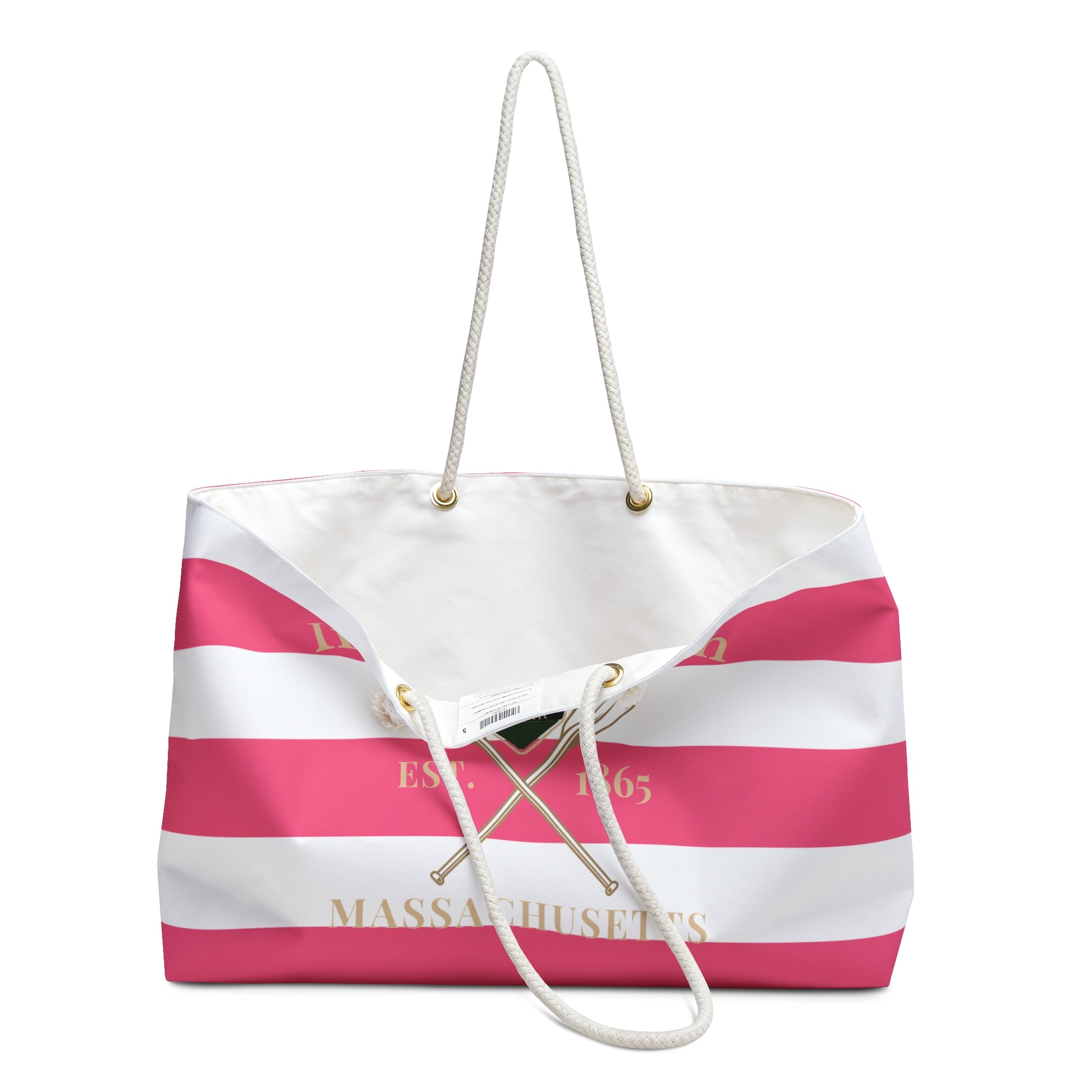 A stylish and practical inkwell beach weekender tote bag perfect for weekends away or trips to the beach. The design exudes a relaxed and vacation-ready vibe, making it a great addition to any traveler's collection. Ideal for beach-goers and weekend adventurers, this weekender bag is perfect for summer getaways, beach vacations, and road trips.