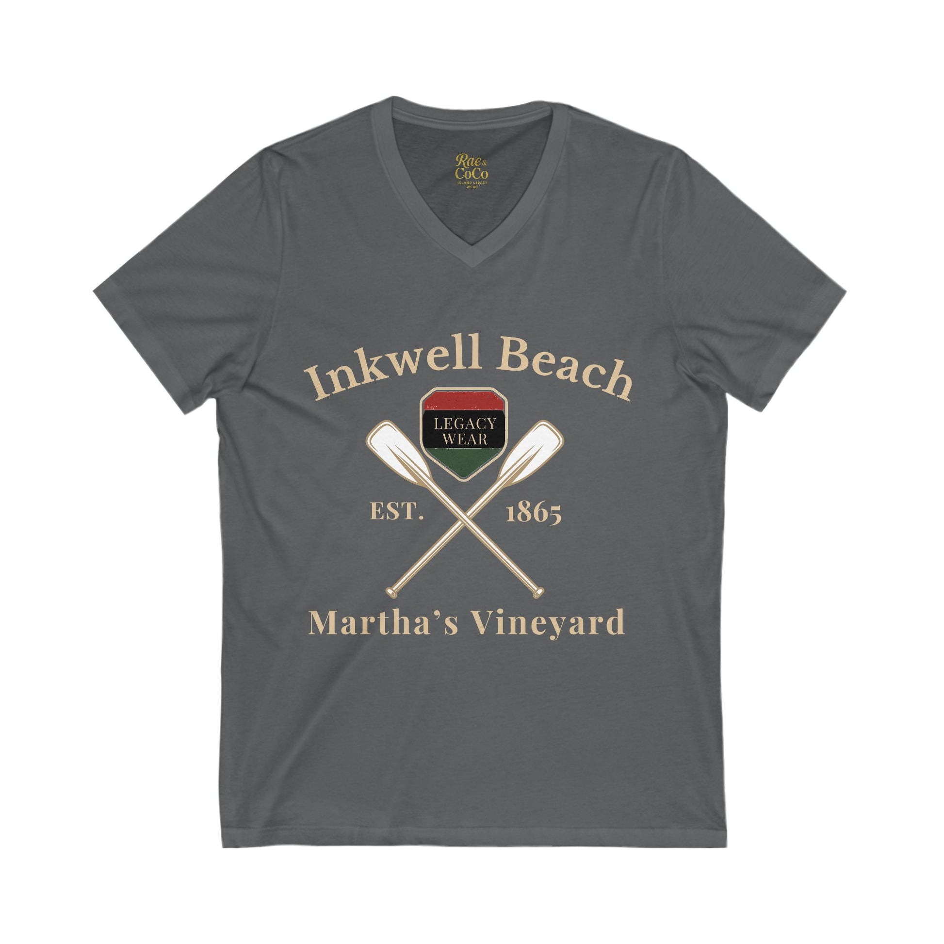 Classic Inkwell Beach V-Neck Tee, Summer Tee, Beach Shirt, Casual Wear, Gift for Beach Lovers, Vintage Style Shirt