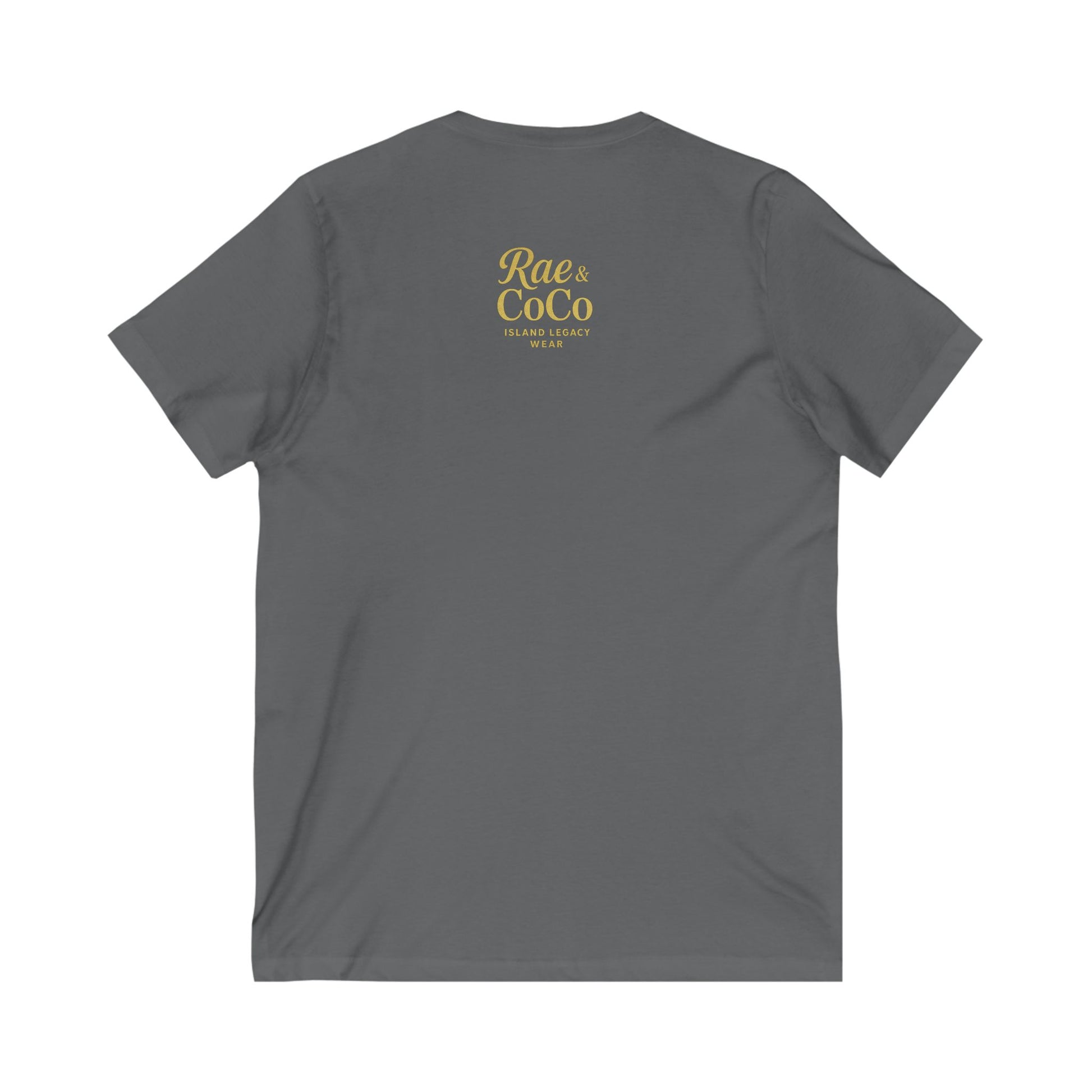 Introducing the perfect addition to your wardrobe: a stylish Unisex Jersey Short Sleeve V-Neck Tee. This tee blends comfort with fashion, making it ideal for both casual outings and semi-formal gatherings. Feel the soft, lightweight fabric gently embrace your skin while the V-neckline adds a trendy touch to any outfit. Whether you're heading out for a day at the beach, enjoying a casual get-together, or celebrating milestones with friends, this tee fits seamlessly into your lifestyle. Perfect for adults who appreciate both comfort and style, this t-shirt is a great gift for birthdays, holidays, and special occasions. Celebrate life’s moments in style!