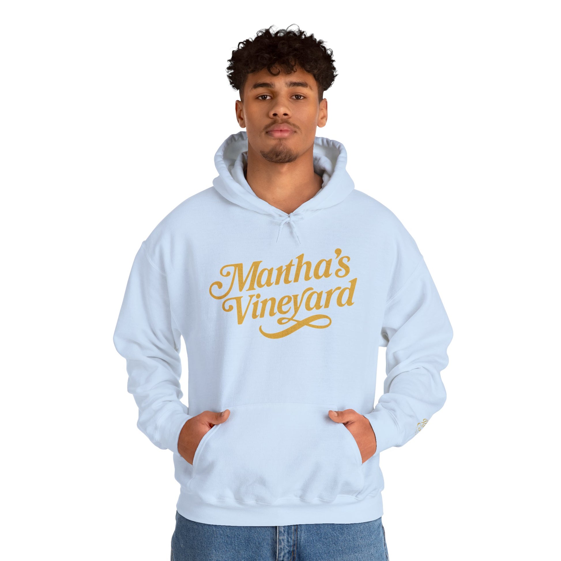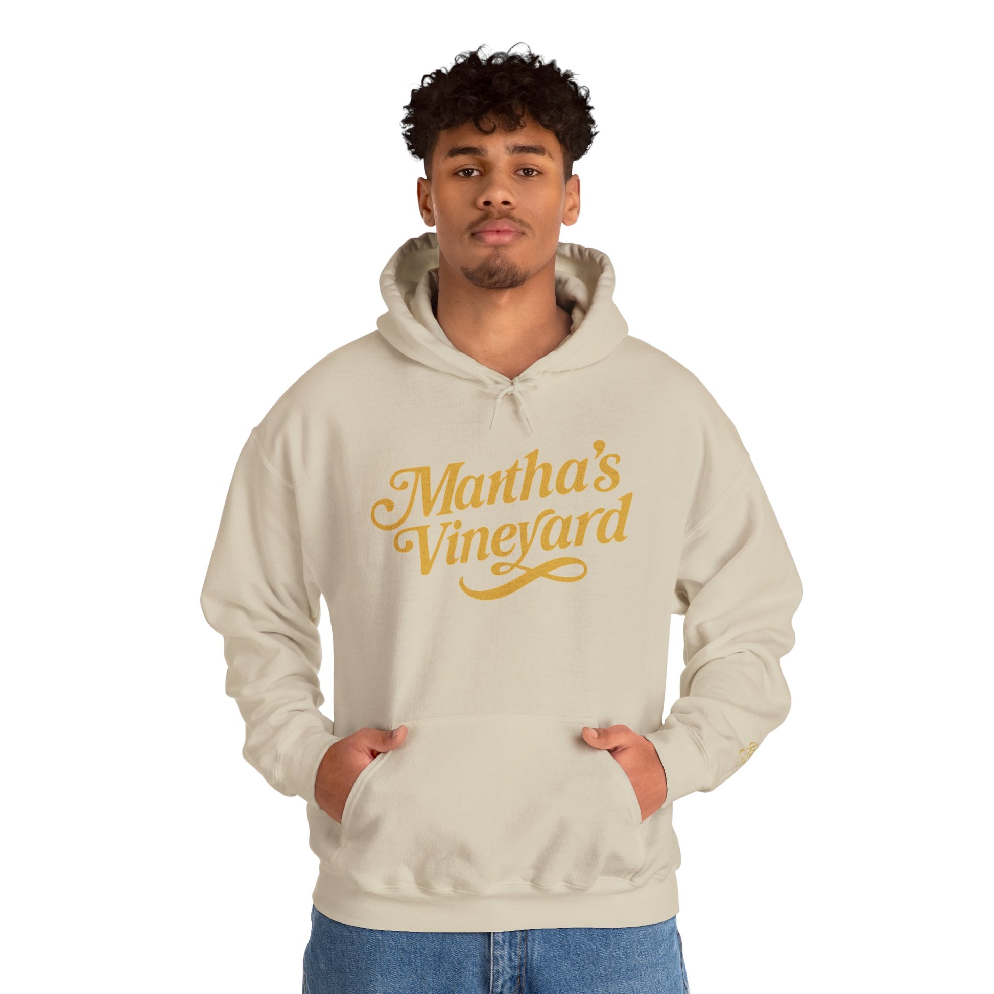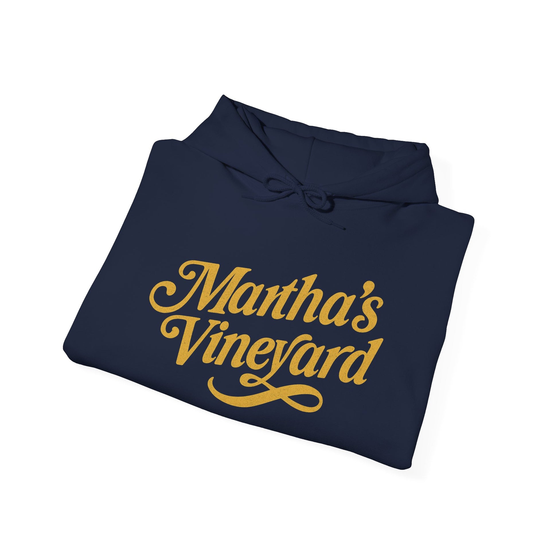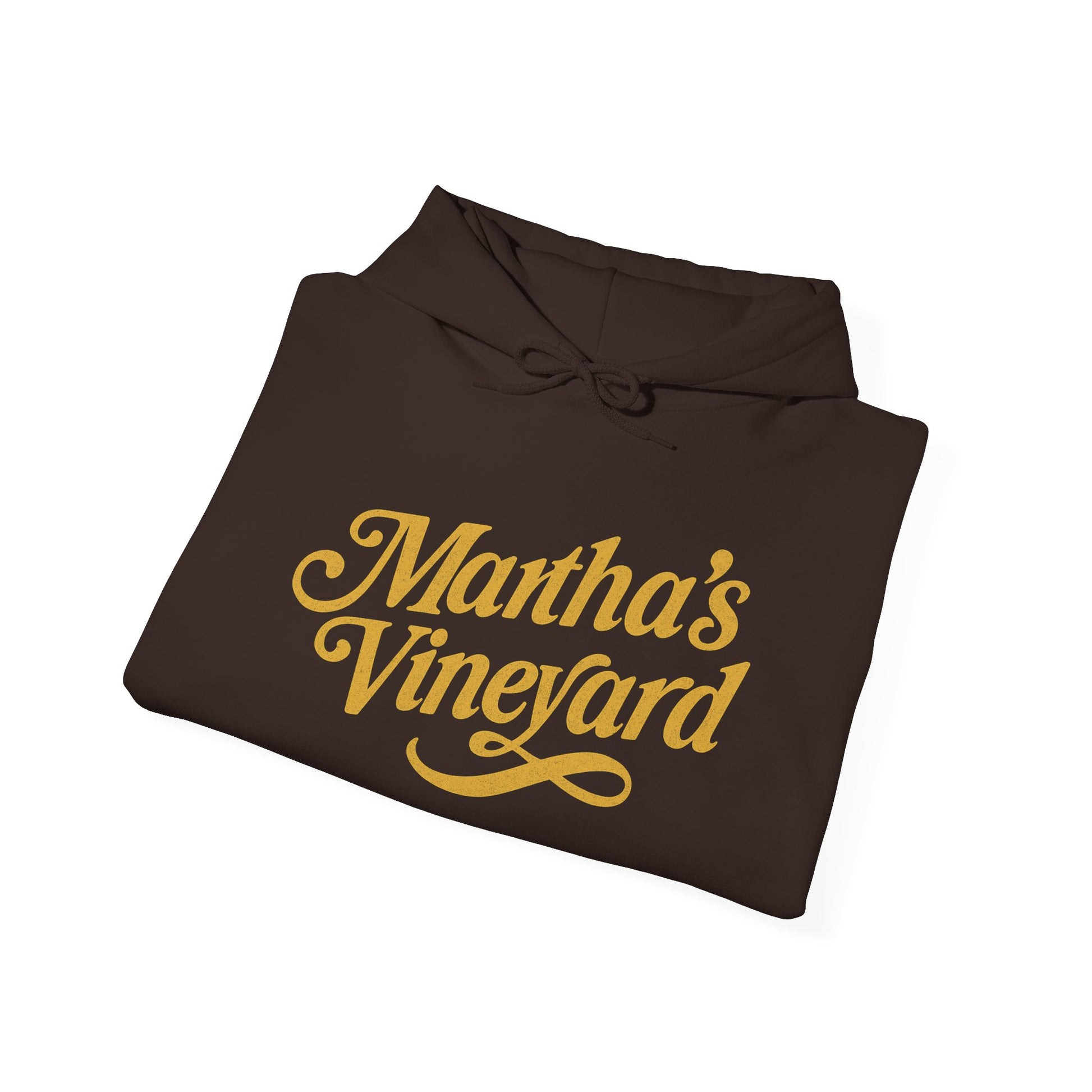 Martha’s Vineyard Hoodie – Unisex Heavy Blend with Cursive Yellow & Black Lettering