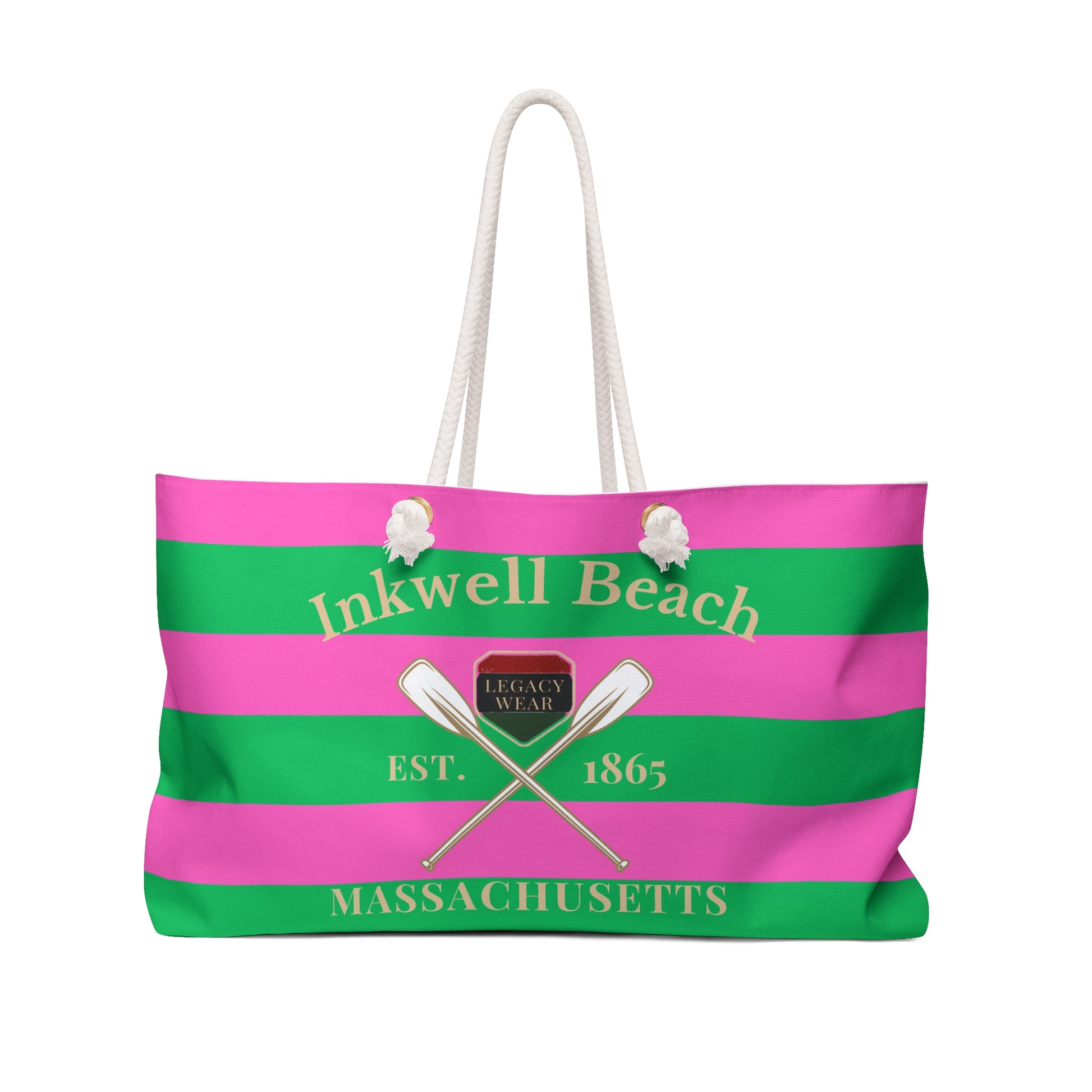 Our oversized Weekender Tote is perfect for your weekend at the beach or in town. The wide-mouthed, durable bag holds a generous amount of personal items and is easily held by its thick rope handles.