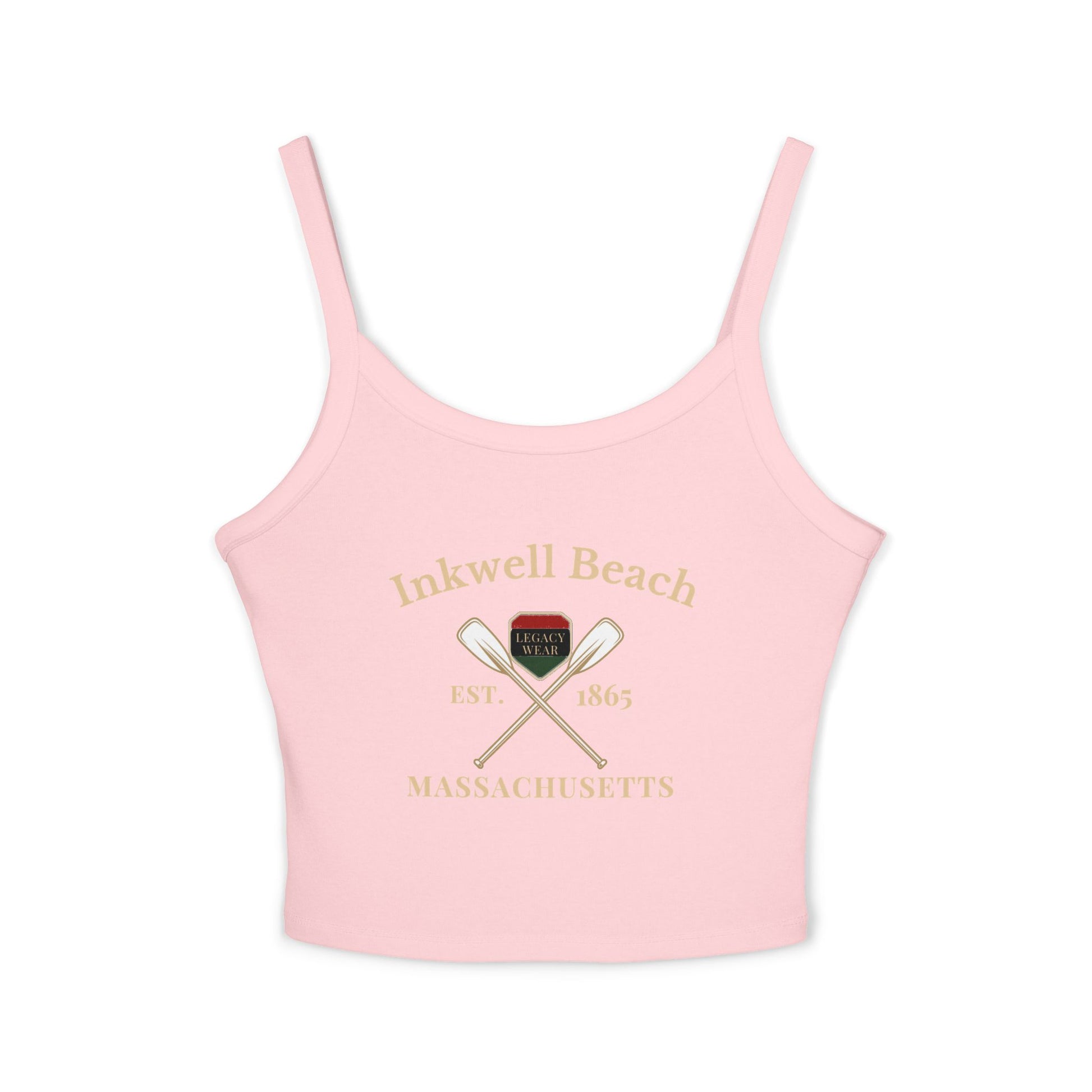 A statement piece for beach lovers, featuring the words 'Legacy by the Sea' in colors of pride. This cropped tank is perfect for sunset views, family cookouts, and brunches by the beach. Ideal for women who appreciate quality fabric, comfort, and socially conscious manufacturing. Suitable for adults to wear during summer outings, holidays, and beach celebrations.