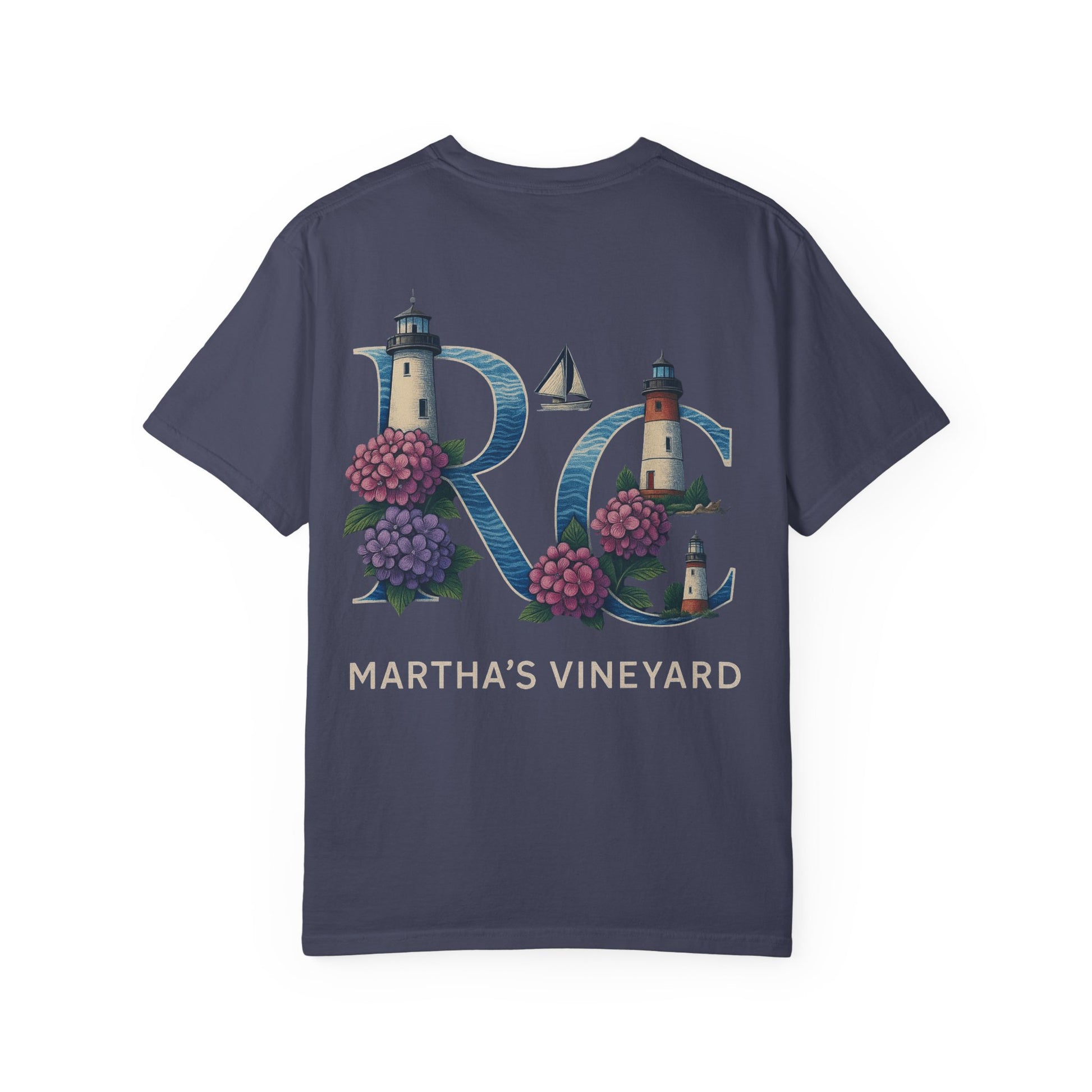 RC Martha’s Vineyard Tee – Nautical Lighthouse & Hydrangea Island Design